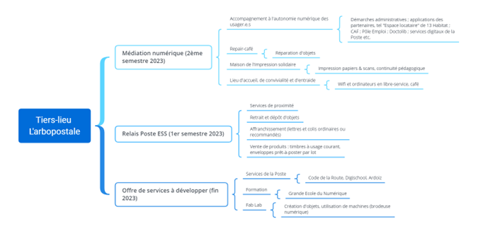 • La mise en place d’un Relais Poste ESS et d’une offre de médiation numérique*. Cette dernière s’étant révélée comme la plus indispensable des propositions parmi celles ayant émergé des ateliers thématiques.